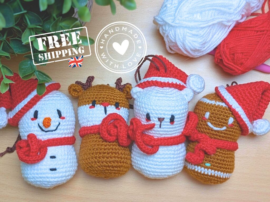 These miniature Amigurumi Snowmen, Reindeer, Polar Bear, and Gingerbread Men bring a soft, festive touch to any Christmas tree. They’re also great for Secret Santa, stocking fillers, teacher gifts, or as a sweet addition to any baby hamper.