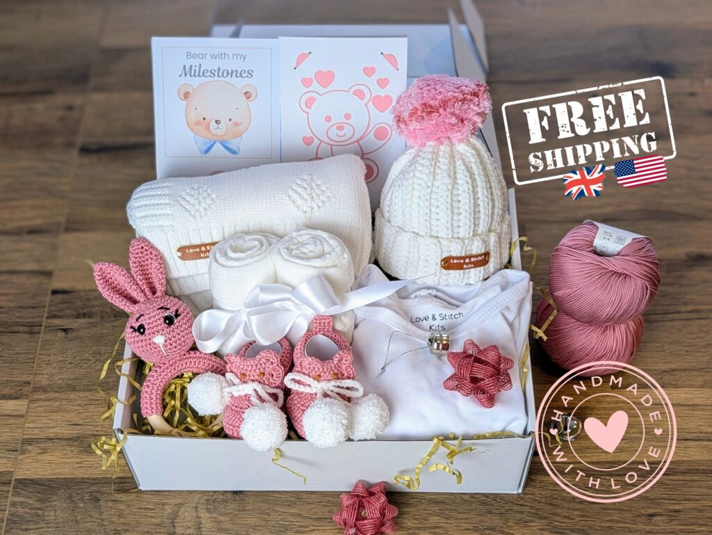 This bestselling newborn hamper is filled with soft crochet booties, a knitted blanket, a personalised bodysuit, a rabbit rattle, and milestone cards. Normally £45.00, this premium gift becomes beautifully affordable during Cyber Week.